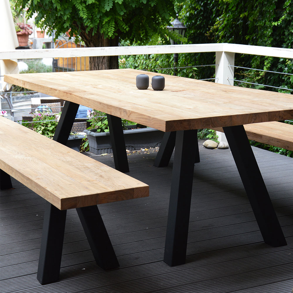 Material | Gestell: Stahl, verzinkt, pulverbeschichtet; Platte: recyceltes Teak |